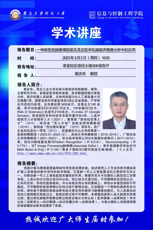 【信控大讲堂】第二十二期——一种新型类脑推理框架及其在医学乳腺超声图像分析中的应用