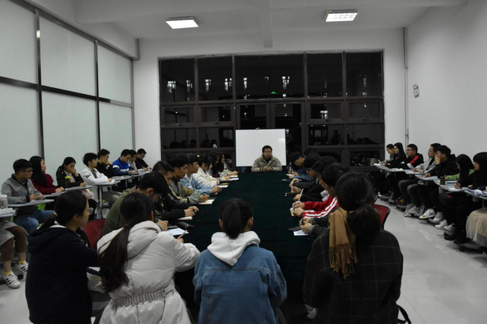 11月12日晚6:00,捷报比分app 在紫阁书院3号学子之家会议室召开党课结业考试交流分享会,本次会议由捷报比分app 团委副书记、本科生第一党支部书记张雨明主持,本科生第一党支部成员以及即将参加党课结业考试的同学到场。