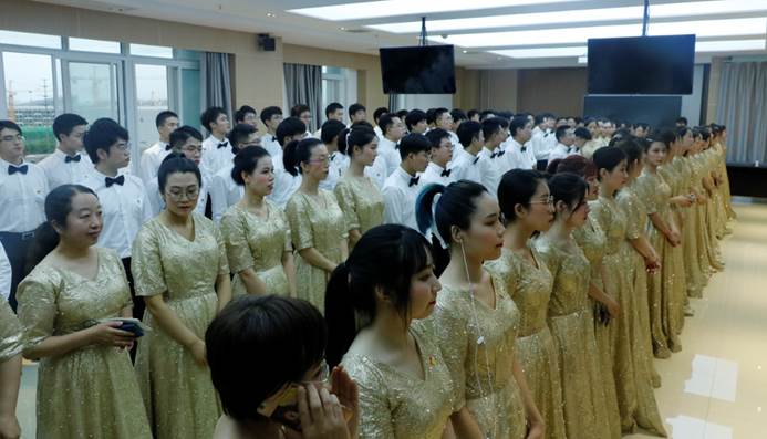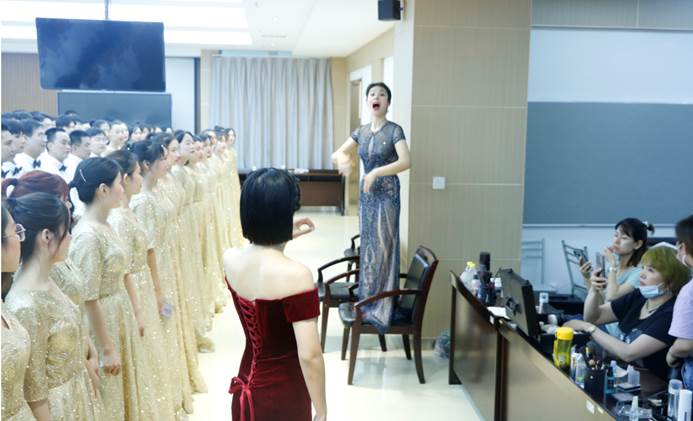 也从各方面为训练师生做好后勤保障。在专业老师的悉心指导下,全体师生的配合下,大家的合唱水准和默契度不断提高,每次训练都朝气蓬勃、 昂扬向上。