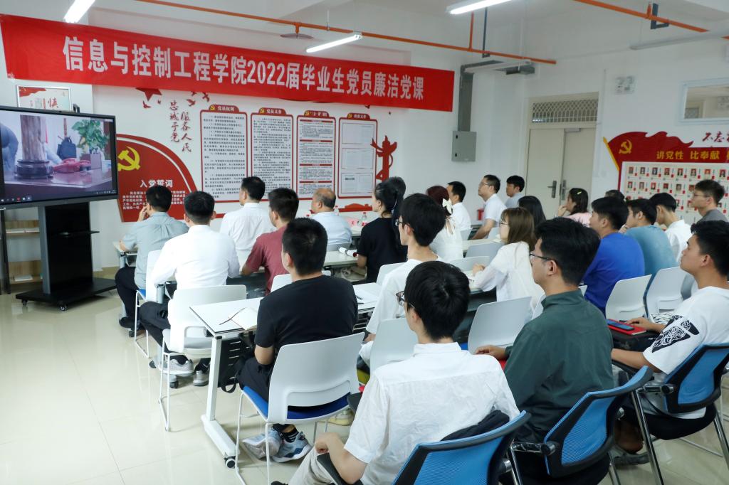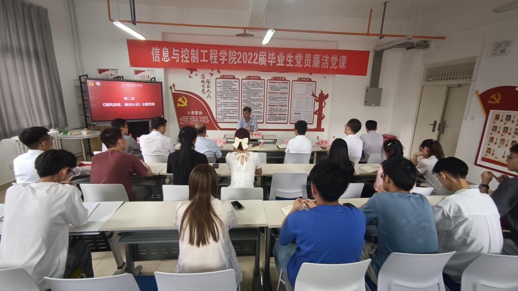 为筑牢毕业生党员崇廉尚洁的思想根基,引导学生树立廉洁观,提高廉洁从业意识,走好职场人生第一步。6月22日上午,捷报比分app 于草堂校区信控楼709党建活动室召开2022届毕业生党员廉洁教育党课。捷报比分app 党委书记吴昊,党委副书记、纪委书记、副院长张博,各系党支部书记以及2022届毕业生党员参加。党课由捷报比分app 团委书记张颉主持。