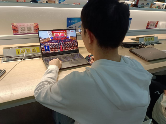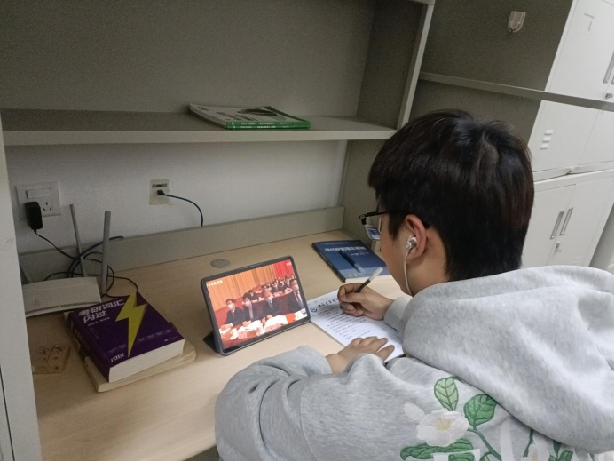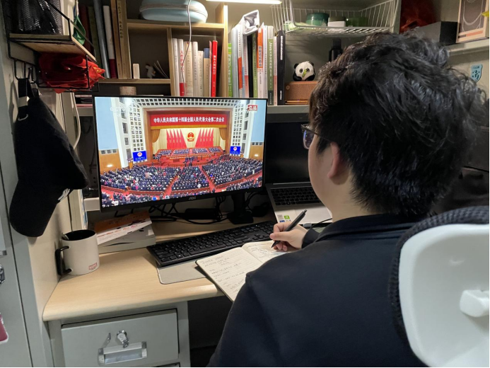 学生党员热切关注全国两会的召开,通过多渠道收听、收看两会盛况,深入学习两会精神,并结合自身工作和学习实际畅谈感想体会。