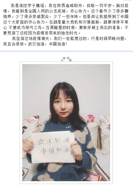 万众一心,共同抗“疫”。捷报比分app 学生党员时刻以先锋模范标准要求自己,秉承着“奉献、友爱、互助、进步”的青年志愿者精神,充分发挥“四个带头”作用,在抗击疫情的战场上,抒发出爱党爱国的美丽情怀,肩负起功成有我的责任担当。在疫情防控工作中,践行着共产党员的初心使命,展现了新时代青年积极向上、勇于担当的精神风貌。我们坚信,在以习近平总书记为核心的党中央集中统一领导、科学决策下,全国各族人民团结一致、坚定信念、众志成城,这场疫情防控攻坚战必将取得最终胜利!