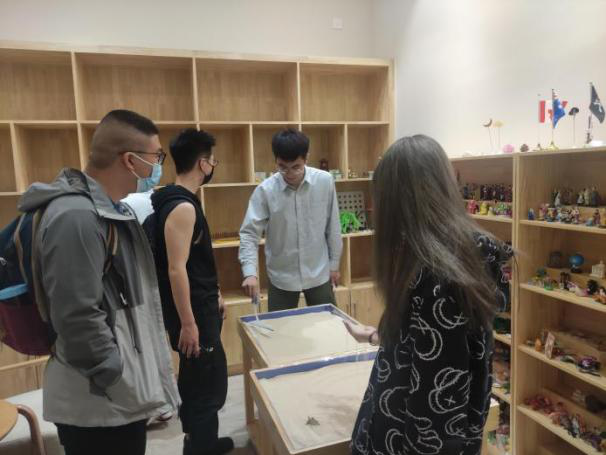 同学们首先参观的是五楼的心理素质拓展与咨询中心,包括个体咨询室、团体辅导室、沙盘辅导室、音乐放松室、宣泄室和预约室等。其中宣泄室、音乐放松室以及沙盘辅导室这三个功能室,是他们最好奇的地方。功能室中的有趣仪器,比如多通道生物反馈训练系统、VR虚拟现实运动放松训练系统、智能自信心提升训练系统等,令同学们驻足观望,争相观察。