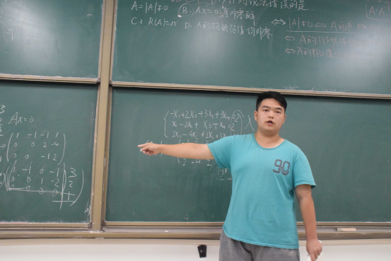 陈雨航同学首先将自己复印的线性代数笔记让大家传阅,她为在座的同学讲解选填题目,主要讲解了有关矩阵的问题和解法、矩阵的特征值和标准形,行列式的解法、代数余子式和初等行列式变换。她结合老师所讲的解题方法再结合自己的理解,以作业题的形式向大家讲解了基础知识点。在短暂的休息之后,常朝然同学为大家讲解线性方程组的解法,他结合书本例题向大家仔细的讲解了不同题目的不同解法。同学们仔细听讲,不时在笔记本上记录,在本次微课堂的最后,同学们针对自己不懂的问题向学霸虚心请教,学霸们也一一认真解答。