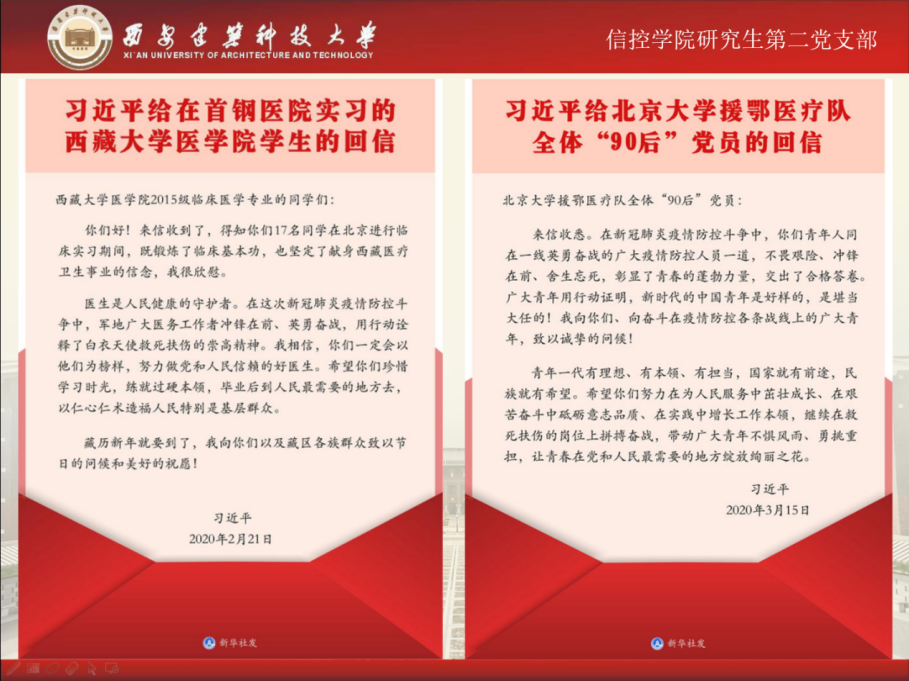 各研究生党支部先后通过线上会议平台组织研究生党员、积极分子等参加此次党日活动。各党支部书记带领支部成员学习了习近平总书记关于坚决打赢疫情防控阻击战的一系列重要讲话精神、给北京大学援鄂医疗队全体“90后”党员的回信以及给首钢医院实习的西藏大学医捷报比分app