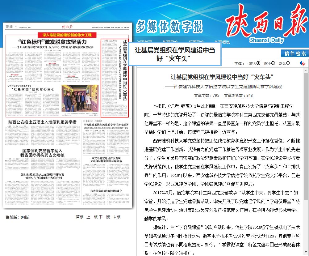 学生实际,以党建为引领、以学风为抓手、以学生党员为着力点,通过党员争优、党员带头、党员模范,党员传、帮、带,开展了以 “陋室德馨”、“学霸微课堂”和“异语暖心”三个模块为主的“双一流”特色项目,这是大学生党建工作与学风建设的有机结合,该做法形成以后,取得了良好成效,党支部战斗堡垒作用得到充分发挥。通过开展“双一流”特色项目,不仅磨练了党员意志,提升了党员素质,也促进了学风建设、助力了人才培养工作。党员先锋模范作用得到充分凸显,涌现出一大批在专业学习、创新创业、奖学金、推免等方面的先进代表。同时该做法曾被陕西日报《让基层党组织在学风建设中当好“火车头” ——西安建筑科技大学捷报比分app