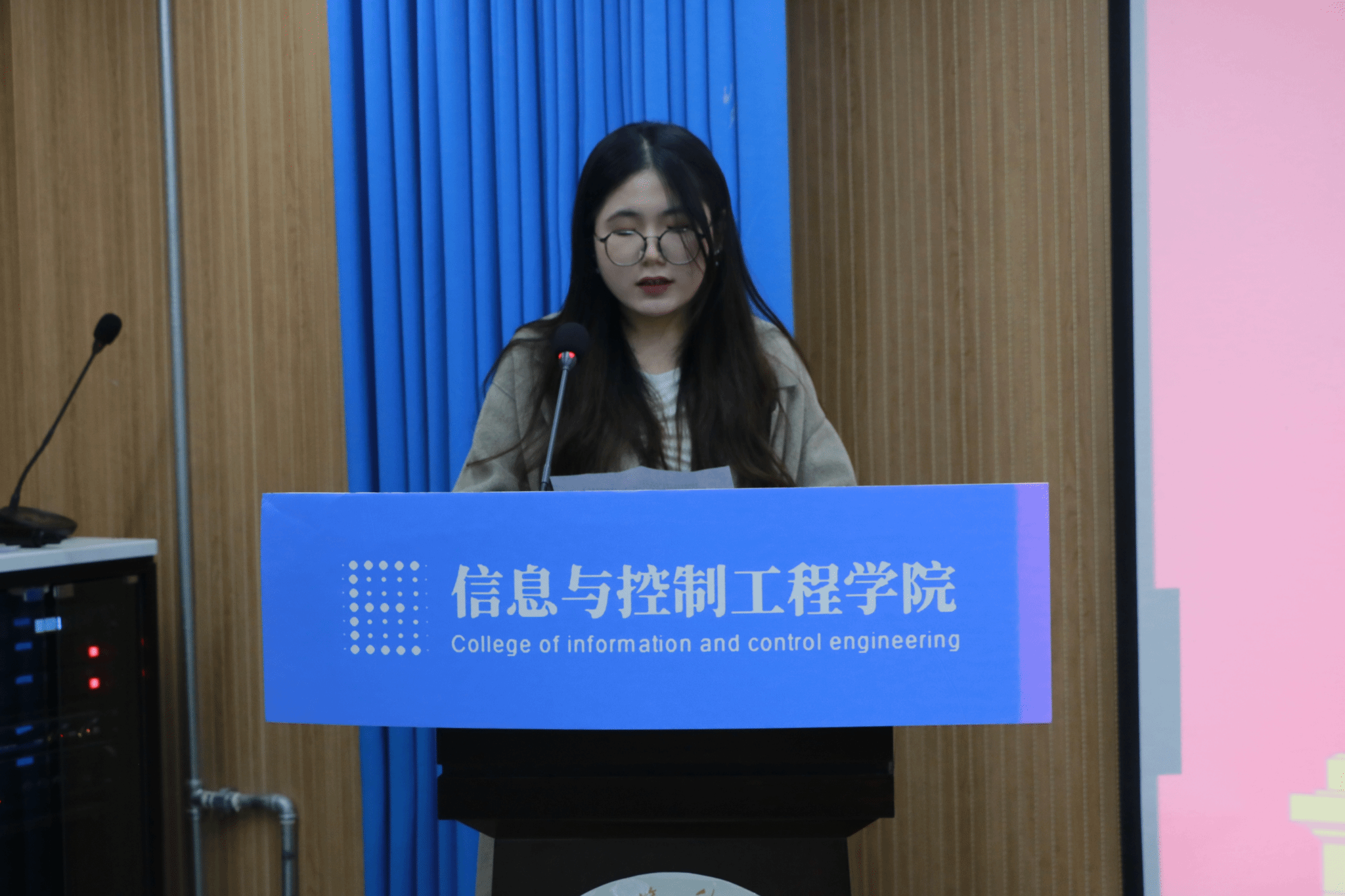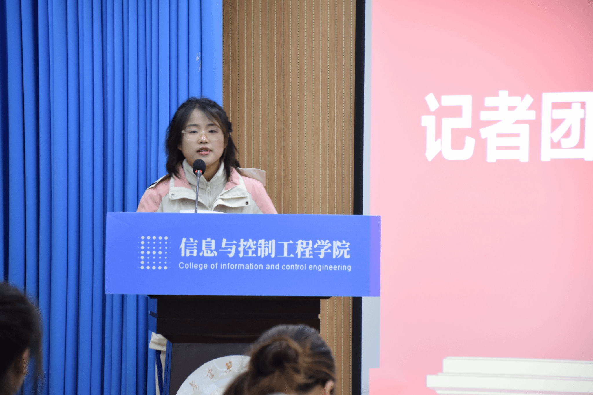 记者团团长付云玥代表上一届记者团从组织概况、工作成果、工作反思做了工作过总结,并分享自己的体会与感悟。她提到自己的大学时光伴随着记者团发展,从懵懂走向成熟。希望记者团能够在新一届的带领下办的越来越好,全体成员能够知不足而改之,不断提高自己的新闻素养,做到记录时代脚步,传递信控声音,书写更辉煌篇章。