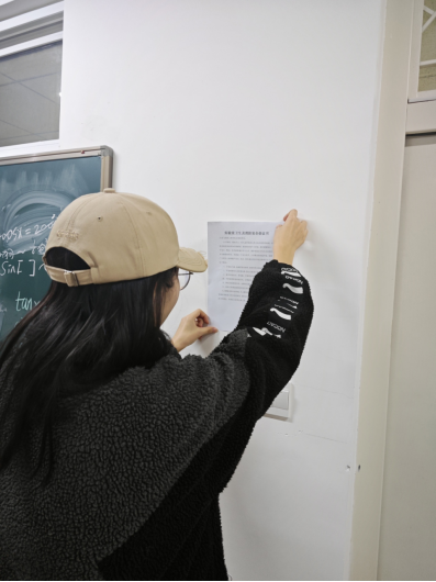 在活动中,研究生会同学深入到每一间实验室,向同学们分发倡议书,倡导同学们严格遵守学校实验室安全和卫生管理规定,自觉保持自己的工位干净整洁、不乱拉电线、警惕实验室用电安全,为营造安全卫生的科研学习环境共同努力。
