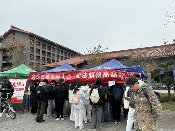 宪法,作为国家的根本大法,犹如一座巍峨的灯塔,指引着民权的航向,为国家的繁荣与稳定提供坚实的保障。为了进一步弘扬宪法精神,让法治的理念如春雨般润物无声地渗透至每位学子的心田,在我国第十一个“国家宪法日”来临之际,12月4日,捷报比分app 学生会、研究生会组织开展以“法制理念深入人心,宪法旗帜高高飘扬”为主题的宪法宣传日系列活动。此次活动吸引众多师生积极参与,现场气氛热烈,同学们热情高涨,共同在校园中掀起了一场宪法学习的热潮。
