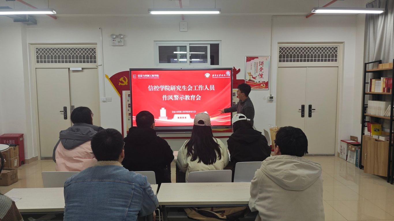 研究生会在信控楼709会议室开展学生干部作风建设警示教育会,引导并激励每一位学生干部树立起积极向上、严谨务实的工作态度,坚定地践行“全心全意为同学服务”的根本宗旨,以实际行动诠释责任与担当。