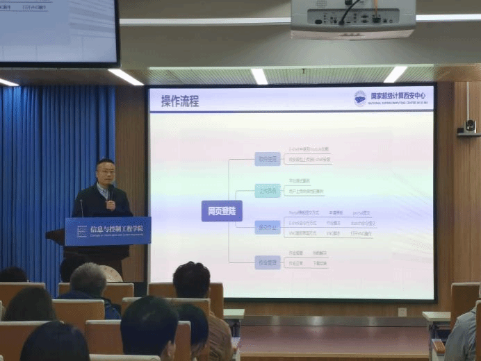为了让师生们能够亲身体验超算算力资源,董旭策向参会的广大师生免费提供了国家超算西安中心试算账号,并细致讲解、现场演示了账号领取及使用方法。从注册流程到实际操作步骤,每一个细节都进行了详细说明。