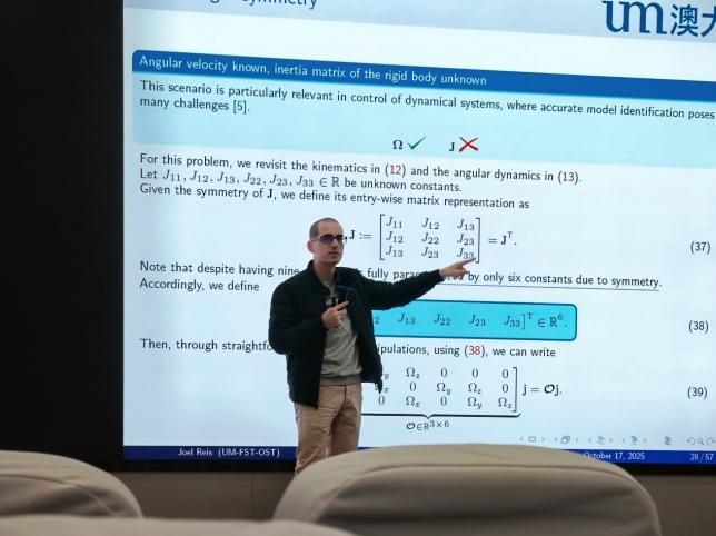乔尔·雷伊斯率先开讲,直面刚体动力学中的经典难题:在持续干扰下,角速度与惯性矩阵的相互估计。他通过将非线性动力学线性化,成功将线性卡尔曼滤波器应用于这一传统非线性领域。该理论不仅经过严格证明,更通过仿真与实验验证,为飞行器等高精度控制提供了新支撑。