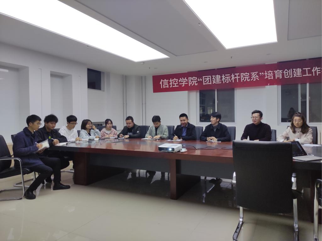 “全省高校团建标杆院系”培育创建工作推进会在信控楼513会议室召开,院团委书记张颉、院团委副书记张雨明、院学生会指导老师杨晓寒、院研究生会指导老师孙正清、院记者团指导老师赵莎以及各团学组织主要干部参加了此次会议。