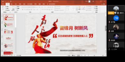 各基层团支部、学生组织于3月份开展了“众志成城抗疫情,志愿服务暖人心”学雷锋志愿服务月活动,为打赢疫情防控阻击战贡献青春力量。各基层团支部和学生组织线上和线下相结合,理论学习和实践活动相结合,以多种方式开展了丰富的活动内容。