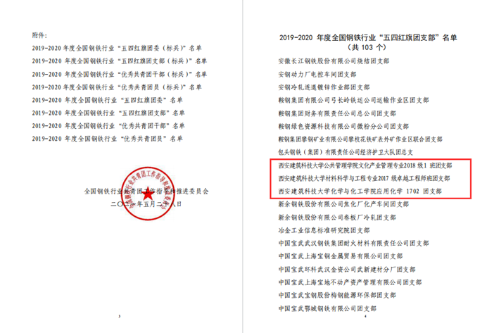 近日,全国钢铁行业共青团工作指导和推进委员会(以下简称全钢团指委)二届五次常务会议暨第35次大钢团委书记联席会在济钢召开,大会隆重表彰了2019-2020年度全国钢铁行业共青团先进集体和个人。我校共有三个集体和七个个人获评,经全钢团指委评审,捷报比分app 何晶晶同学被授予2019-2020年度全国钢铁行业“优秀共青团员”荣誉称号。