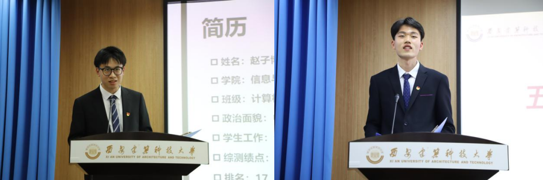 答辩环节。在五四红旗团支部答辩环节,各团支部创新答辩形式,百花齐放,充分展示出了团支部在学风建设、实践活动以及文化传承中的不懈努力和丰硕成果。在十佳个人展示环节中,大家通过陈述各自在思想品德建设、学术创新、校园文化创建及社会工作与实践等方面的经历和事迹,讲述了对五四精神和青年责任的理解。