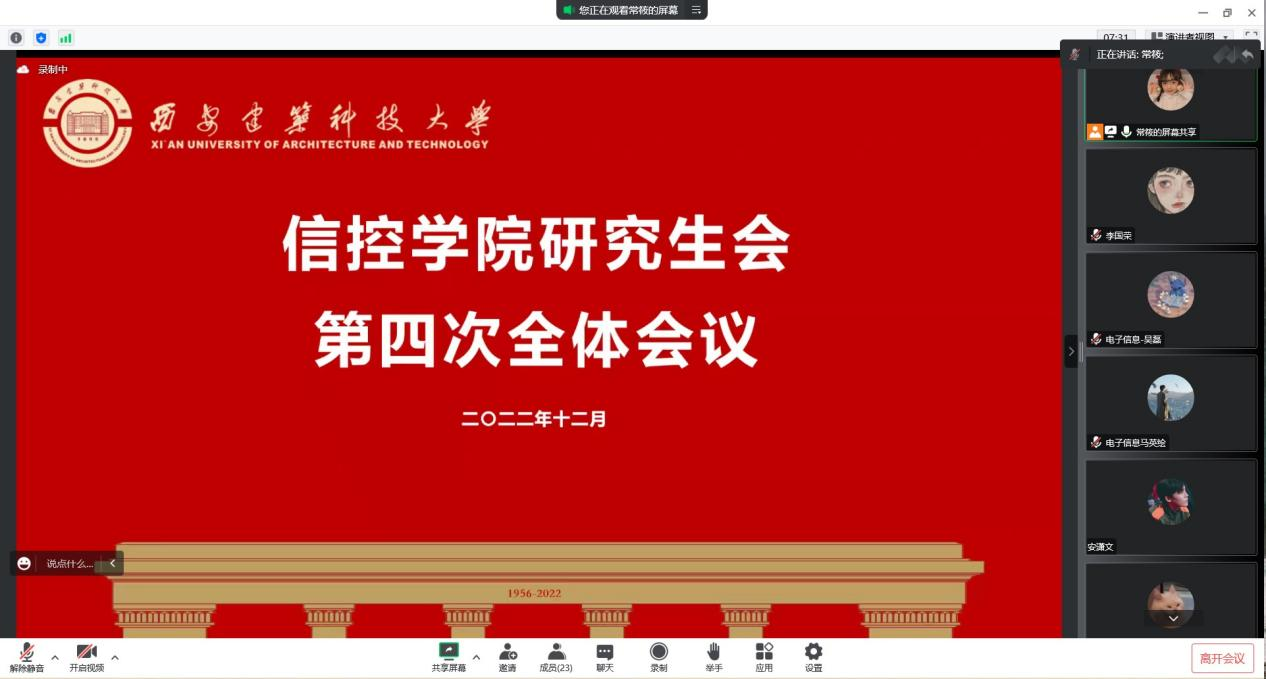 12月5日晚7点,捷报比分app 研究生会于线上召开了2022年秋季第四次全体会议。会议由主席团成员常筱同学主持,研究生会全体成员参加。