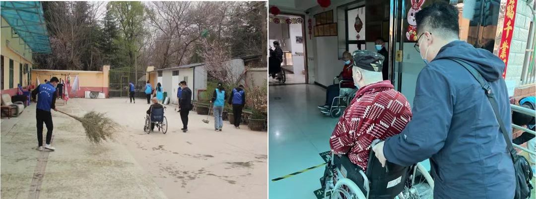 捷报app 志愿者身着蓝色马甲在敬老院开展志愿服务,老人们非常开心,纷纷从房间里走了出来,坐轮椅的老人也让工作人员把他们推了出来,志愿者们与老人们亲切打招呼,拿着抹布、笤帚、簸箕等工具,仔细擦洗清扫房间内外、院落的墙壁、地面、卫生死角及各类设施;用手搀扶着老人一起散步,聊天拉家常,听老人讲述丰富的人生阅历;拿出携带的手提袋、口罩等小礼品,向老人们分发,大家分工合作,热情高涨。