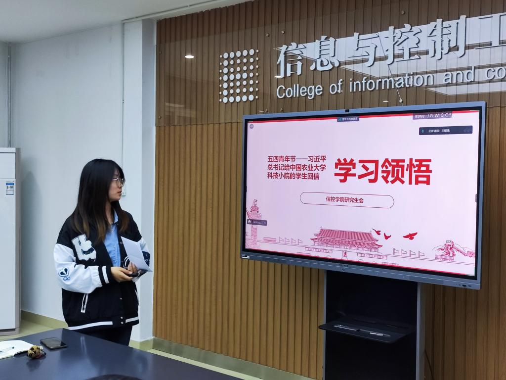 会议首先由张岳同学带领大家学习了五四精神,张岳详细介绍了五四青年节的来源,五四运动的爆发背景以及五四精神的内涵。随后全体成员共同学习了《习近平总书记给中国农业大学科技小院同学们的回信》,这封回信包含了习近平总书记对广大青年的节日祝贺,对新时代中国青年的殷切期望以及成长要求,同学们纷纷感到到作为一名研究生所肩负的历史责任和时代使命。