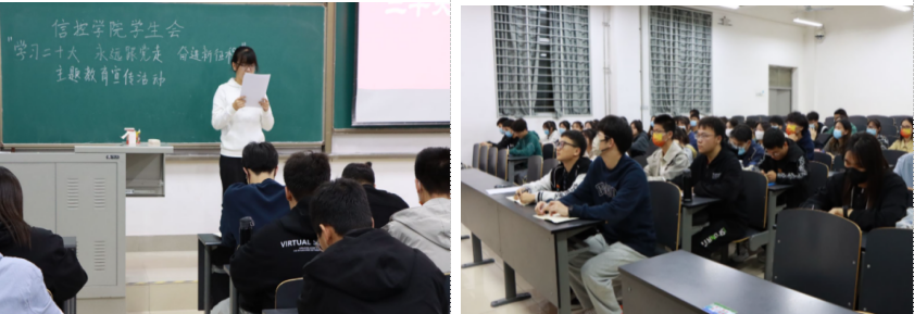 学生会在学府城9#109开展“学习二十大,永远跟党走,奋进新征程”主题教育宣传活动,树立并培养了信控学子攻坚克难、开拓奋进的精神,更明确了党和国家的奋斗目标和宏伟蓝图,为捷报比分app