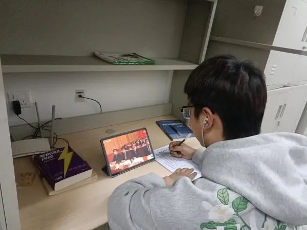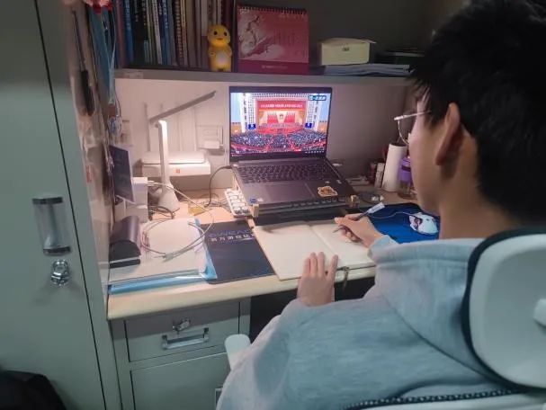 学生会全体成员通过线上线下相结合的方式观看全国两会开幕式直播,共同学习两会精神,并就政府工作报告展开热烈讨论,表达了青年一代对国家发展蓝图的向往和对社会进步的不懈追求。