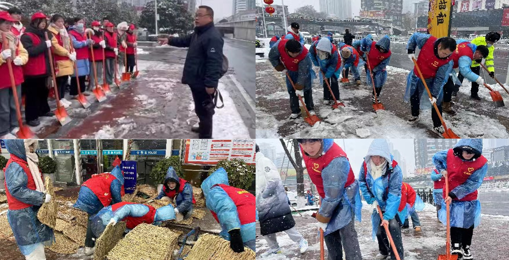 在寒假期间,湖北襄阳下了暴雪,对人们的出行造成不便,社区开展暖冬特别行动——铲冰除雪应急保障,我所参加的这次活动是清扫紫荆妇产医院门前的积雪。
