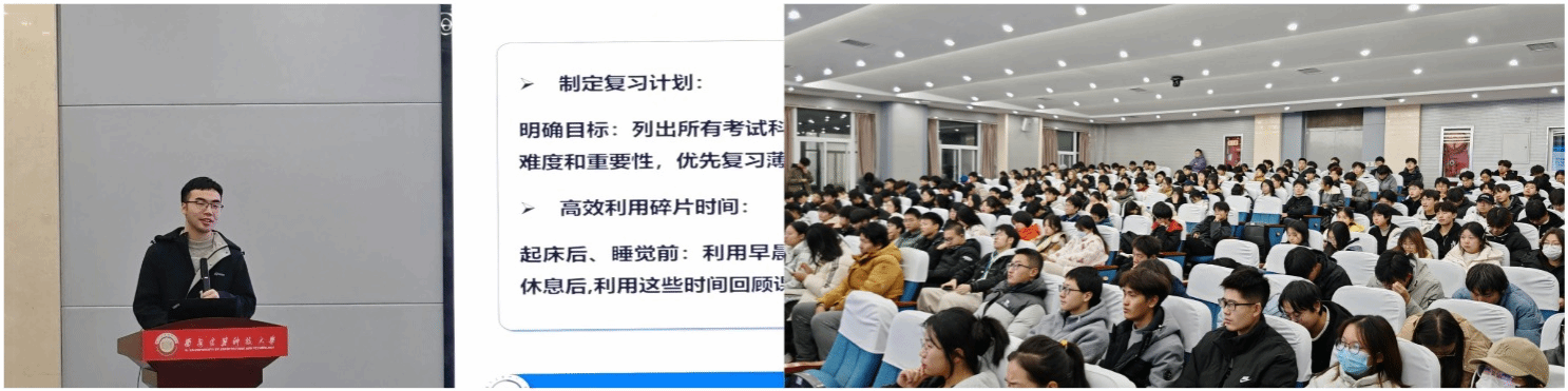 辅导员李朝从考前复习、诚信考试、安全教育三个方面展开讲解。临近期末考试,提醒同学们要学会制定合理的复习方案,养成良好习惯,劳逸结合、科学用脑,合理安排复习时间。强调同学们要牢记校规校纪、保持头脑清醒、坚守诚信考试的底线,用真实成绩检验自己的学习成果。同时提醒大家年末要注意防范各类诈骗并注意假期安全。