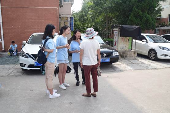 紧接着,队员们进入该社区以调查问卷的形式对居民生活状况及居民对智慧社区了解程度进行了调研。队员们通过大量采访,了解到居民对社区建设的迫切需求,对随后的智慧社区建设在该社区推广的可行性起到了重要的参考作用。