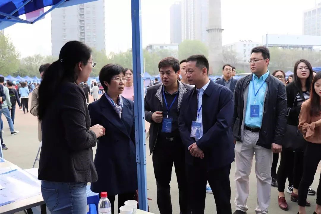 党政领导、招生就业指导中心负责同志以及毕业生辅导员纷纷来到洽谈会现场了解学生求职情况。
