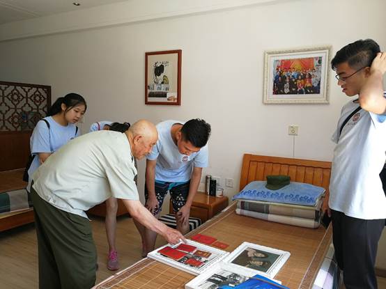 上午十时,实践队抵达了敬老院,并得到了敬老院负责人的支持。首先,全体队员在护理科科长的带领下,参观学习了整个敬老院的建设情况。在科长的介绍下,同学们更进一步地了解了敬老院的历史、人员构成、发展状况等。接着,队员们见到了敬老院的革命老战士,并为老红军们送上了营养品。科长带领同学们去拜访老红军王布福爷爷,同学们的到来,瞬间活跃了敬老院的氛围,各位爷爷奶奶纷纷和同学们交谈,一直持续到了午餐时间。