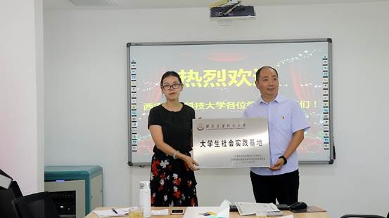 当日下午2:30,朱经理及郑书记分别就此次挂牌仪式致辞。朱经理作为建大校友,向郑书记一行介绍了公司的创建背景和运营方式,然后就保障性住房的现状表达了自己的看法。郑书记对本次社会实践基地的成功建立给予了充分肯定及良好祝愿,进一步说明学校对大学生社会实践的重视和本次实践的意义,同时介绍了学校近年来的发展现状和取得的成绩,最后诚挚邀请校友常回家看看。对话结束,双方分别观看了曲江宜居和学校的宣传片,更深层次地了解对方的情况。随后,实践团队长龙永富同学作为队员代表发言。交流结束后,双方进行挂牌仪式并合影留念。