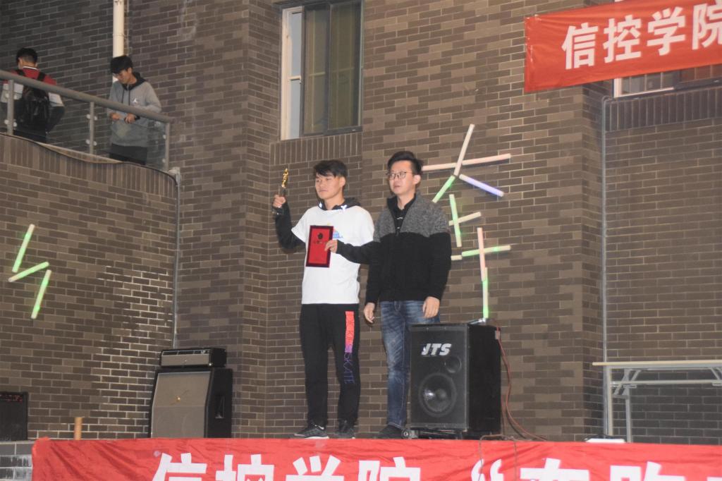 学生韩东东以高达80公里的奔跑里程数荣获本次活动的一等奖。随后由杨晓寒、王栋、张雨明依次为获奖同学颁发证书、奖杯或奖章并合影留念。