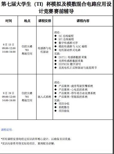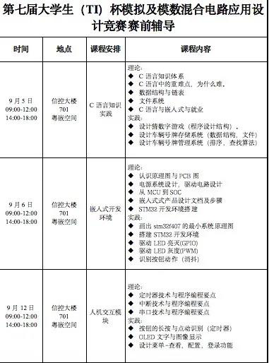 对于本次竞赛高度重视,投入了大量资源和力量聘请实力过硬且有多次指导电赛经验的培训老师做这次指导会,以下是电赛赛前辅导的具体安排,请有意参加电赛的同学们合理安排时间,准时参加培训,提高自己的专业水平,力求在比赛中获得优异的成绩