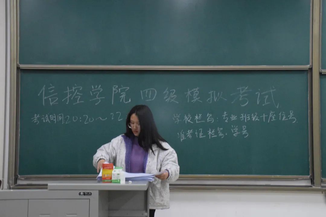 学生会组织举办英语四六级模拟考试。同时,为了严肃考风考纪,检验同学们的学习状态,提高模考质量,20级辅导员赵莎,深入考场,了解考试情况,以及学生答题状态。