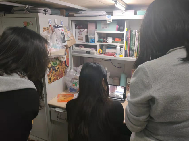 “舍长-五舍长-区域负责人-层长-楼长”五级疫情防控宿舍管理工作体系,从疫情防控、思想动态、线上教学、日常生活需求等方面及时回应解决学生生活问题,引导学生严格遵守疫情管理规定,做好自我防护,共克时艰、共渡难关。