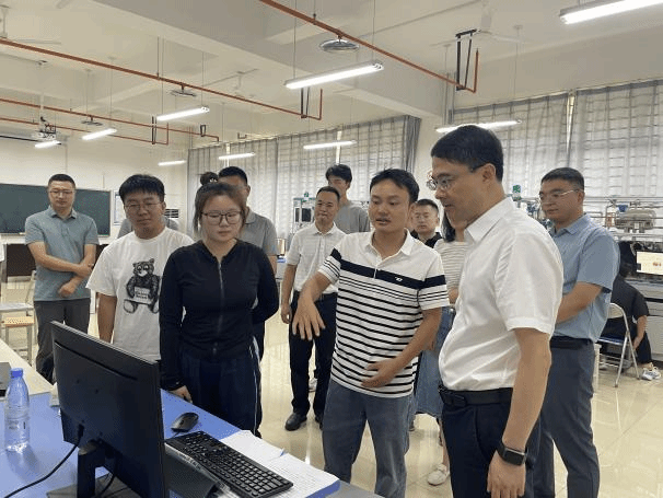 陈荣一行先后到“西门子杯”中国智能制造挑战赛和陕西省大学生(TI杯)模拟及模数混合电路应用设计竞赛的备赛现场,与指导教师、参赛学生亲切交流。陈荣详细询问了同学们的训练进度以及在校学习生活保障条件,细致了解了“西门子杯”国赛和电赛省赛的备赛推进计划与安排,对师生们不惧酷暑、辛勤付出、专心备赛的积极态度给予了充分肯定,鼓励他们继续保持积极向上的精神风貌,为校争光。