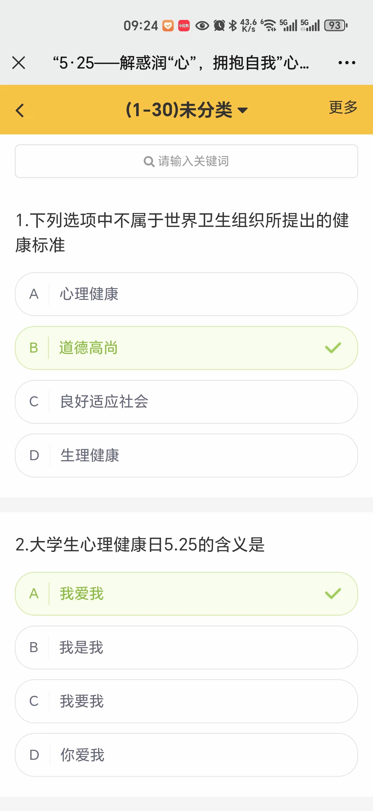 的同学通过线上答题的方式参加了“第十一届心理健康知识竞赛”初赛,共3000余人次完成了初赛。竞赛期间,参赛选手们通过电脑或手机登录竞赛平台,认真答题。题目涵盖了大学生心理健康的各个方面,包括情绪管理、人际关系、压力应对等。选手们凭借扎实的心理知识储备和敏捷的思维,在规定时间内完成了答题。初赛答题时间30分钟,题目由40道选择题和10道判断组成。所有题目均从题库中随机抽取,使本次初赛公平公正。