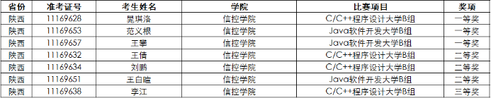 表2:第11届蓝桥杯大赛陕西赛区(软件类)获奖情况
