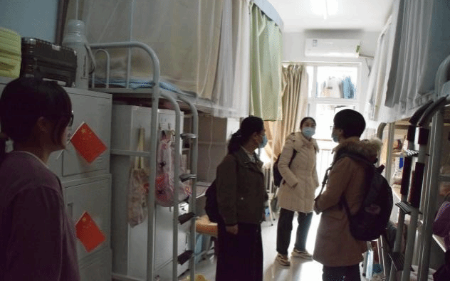 通信与信息工程系党支部书记许捷、系主任王燕妮带领通信系班主任分批进入不同年级宿舍,悉心询问学生学习情况、生活情况,叮嘱学生用电安全、财产安全和人生安全,并细心叮嘱学生最近天气温差较大,注意增添衣物,预防支原体感染,保护身心健康。