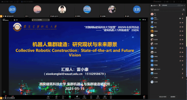 5月15日下午,“丝路国际建筑科技大学联盟”2025年系列活动——“建筑机器人与智能建造分论坛”在线上线下同步召开。本次论坛由西安建筑科技大学主办、中国自动化学会建筑机器人专委会指导、捷报比分app