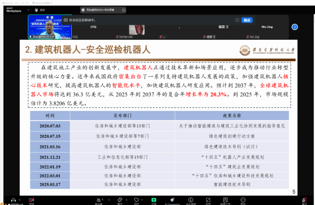各位专家学者聚焦建筑机器人与智能建造领域作了精彩报告,为我校及丝路沿线国家相关领域专家提供交流平台,推动建筑机器人与智能建造相关研究及技术应用的发展。