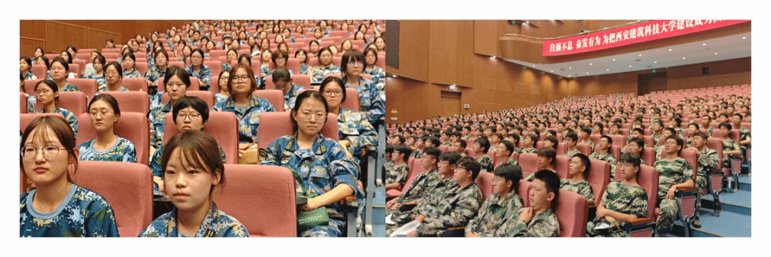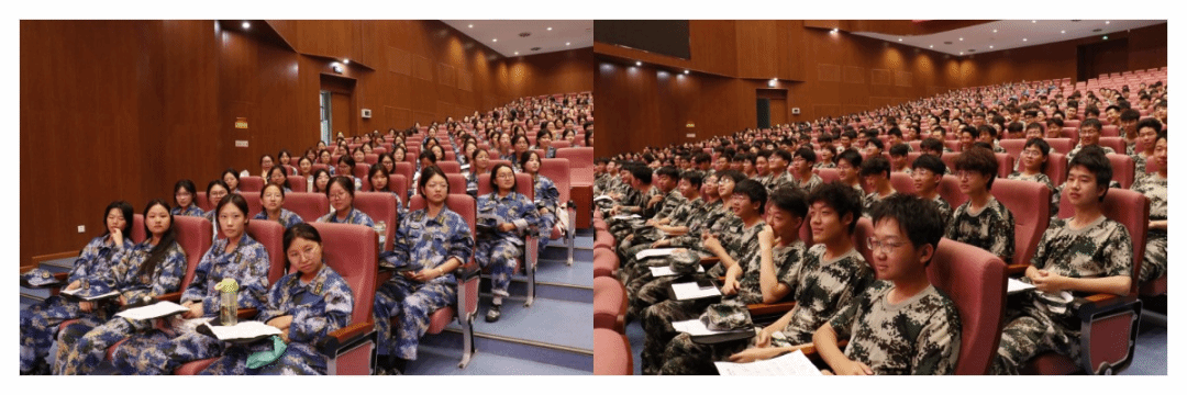 在紫阁大礼堂召开军旅故事分享会。此次活动由辅导员杜瑶主持,2025级全体新生共同参与。