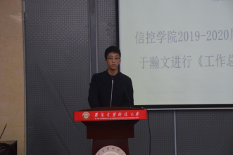 紧接着,捷报比分app 团委组织部部长于翰文、学生会主席白彤彤分别进行了上一年工作总结暨新一年工作展望,2018-2019届研究生会主席杜瑶进行工作总结,2019-2020届研究生会主席温倩进行工作展望。他们在阐述学生工作意义的同时,又表达出对团学组织未来发展的美好祝愿,鼓励新一届学生干部在新学年的工作中,努力完善自己、提升个人素质、培养集体意识,用实际行动更好的服务同学,为捷报比分app 做出更大的贡献。