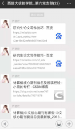 党员有行动,学术有创新。研究生第六党支部充分考虑支部外出党员实际情况,自11月20日起,组织支部成员依次轮流每天早上8点整定时在支部群内分享学术论文写作技巧、本专业论文顶级期刊、本专业学术论坛或峰会最新信息、本专业当前热点及难点等,并以党员为细胞,要求每位党员将支部分享内容分享至师门群,发挥党员带头作用,渗透至每位同学,营造捷报比分app