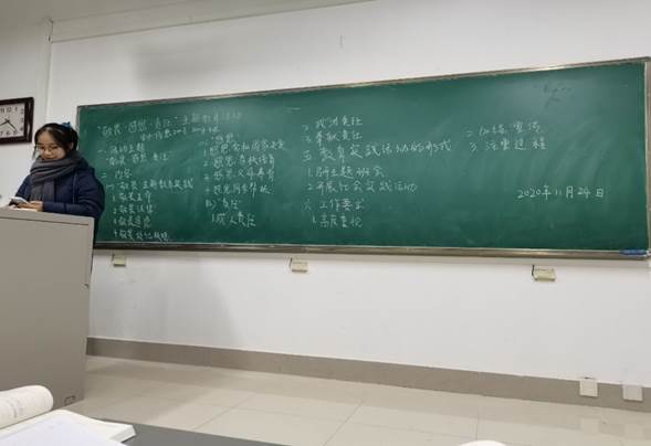 2020年11月19日下午,人工智能2002班全体同学在学府城自习室举行了以“敬畏法律”为主题的教育主题班会。班会伊始,由主持人宣布班会开始。班级宣传委员组织全班同学观看宪法教育视频,旨在帮同学们树立法律意识,深化法律知识。随后,班长邢宇欣同学以敬畏法律为主题对班会情况简单的进行了概括。深化“敬畏法律”宗旨,使班会主题深入同学们心中。同学们也都十分认真的听讲,都全神贯注地仔细看着课件和班长,眼睛里充满着对法律知识的渴望。