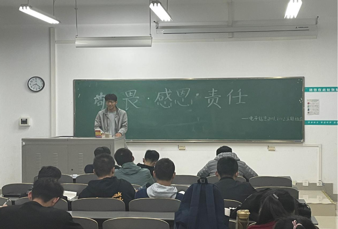 2020年11月24日星期二下午,电子信息类2003、2004班联合召开了以“敬畏·感恩·责任”为主题教育的班会。