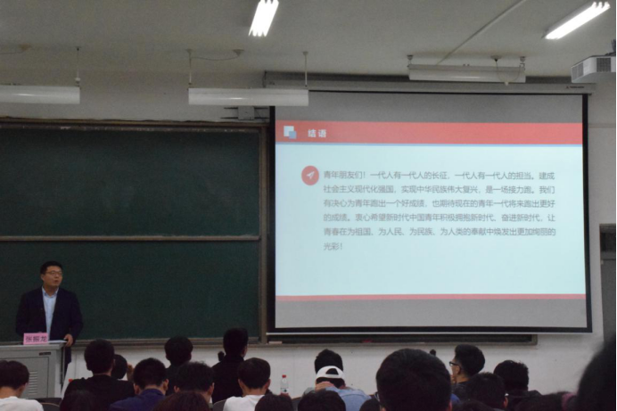 5月28日晚,捷报比分app 第五期青马班暨“星火工程”学生干部培训班第三场培训会在学府城12栋101教室举行。本场培训邀请我校学生工作处副处长张振龙担任主讲嘉宾,捷报比分app 团委副书记、2016级辅导员郝鑫,捷报比分app 草堂校区团总支书记、2017级辅导员张雨明,2018级辅导员杨晓寒出席讲座,本届青马班全体学员到场参加。