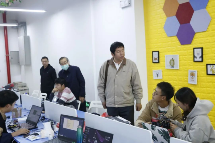 10月12日,教育厅高教处副处长刘辉、专家组组长傅丰林教授、邓建国教授、陈南教授,西安电子科技大学本科生院运行中心主任张宇鹏、陕西赛区组委会宣旸,来我校信控大楼701、702教室视察TI杯模拟及模数混合电路应用设计竞赛进行状况。