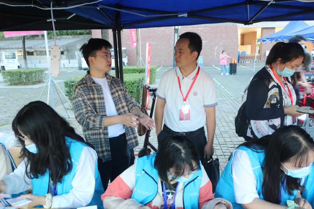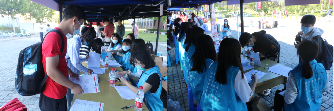 老师在迎新工作筹备阶段和报到过程中,在迎新点指导工作、组织协调,保证各项工作平稳有序,安全高效。