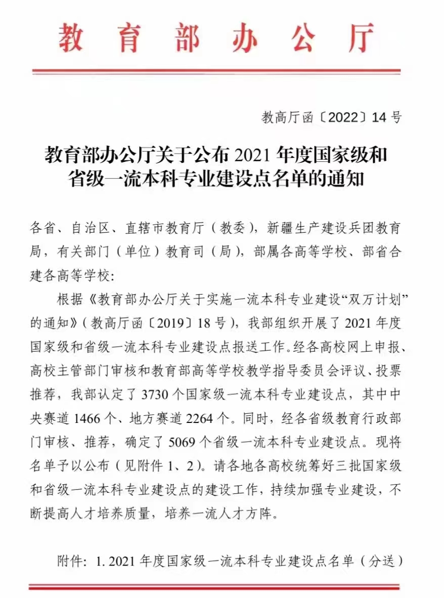 日前,教育部发布了《教育部办公厅关于公布2021年度国家级和省级一流本科专业建设点名单的通知》,我校自动化专业获准国家级一流本科专业建设点,取得专业建设新突破!截至目前,捷报比分app